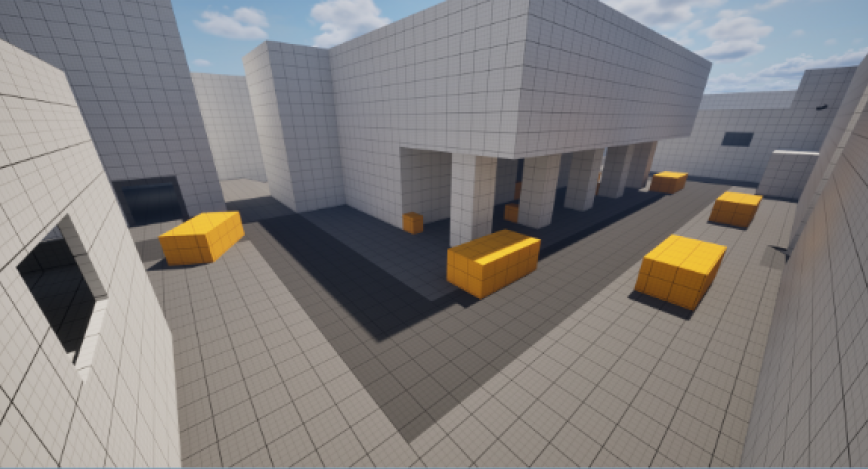 This project was a challenge for me because I was so used to making single player levels. Not only was I still early to making multiplayer levels I was also designing a multiplayer map for a whole new game with mechanics that were constantly changing throughout development.